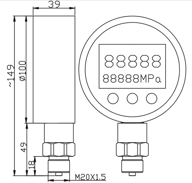 The PYB118 is a high-precision smart digital pressure gauge powered by a battery. The display value is clear and accurate, the seismic performance is good, the peak value is maintained, the percentage display, and the ambient temperature measurement function. Widely used in hydropower, tap water, petroleum, chemical, mechanical, hydraulic and other industries, can measure gas, liquid and other media, suitable for portable equipment, measurement instruments and pressure measurement of indoor pipelines.